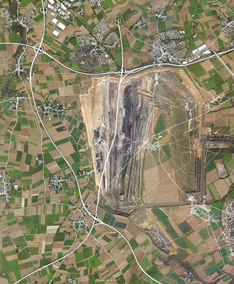 At a speed of a half meter per day the brown coal mining hole Garzweiler II ‘wanders’ through the landscape of Germany.
