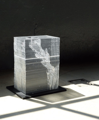 The object shows the migration : each layer represents one year ( 1955 – 2045 ).